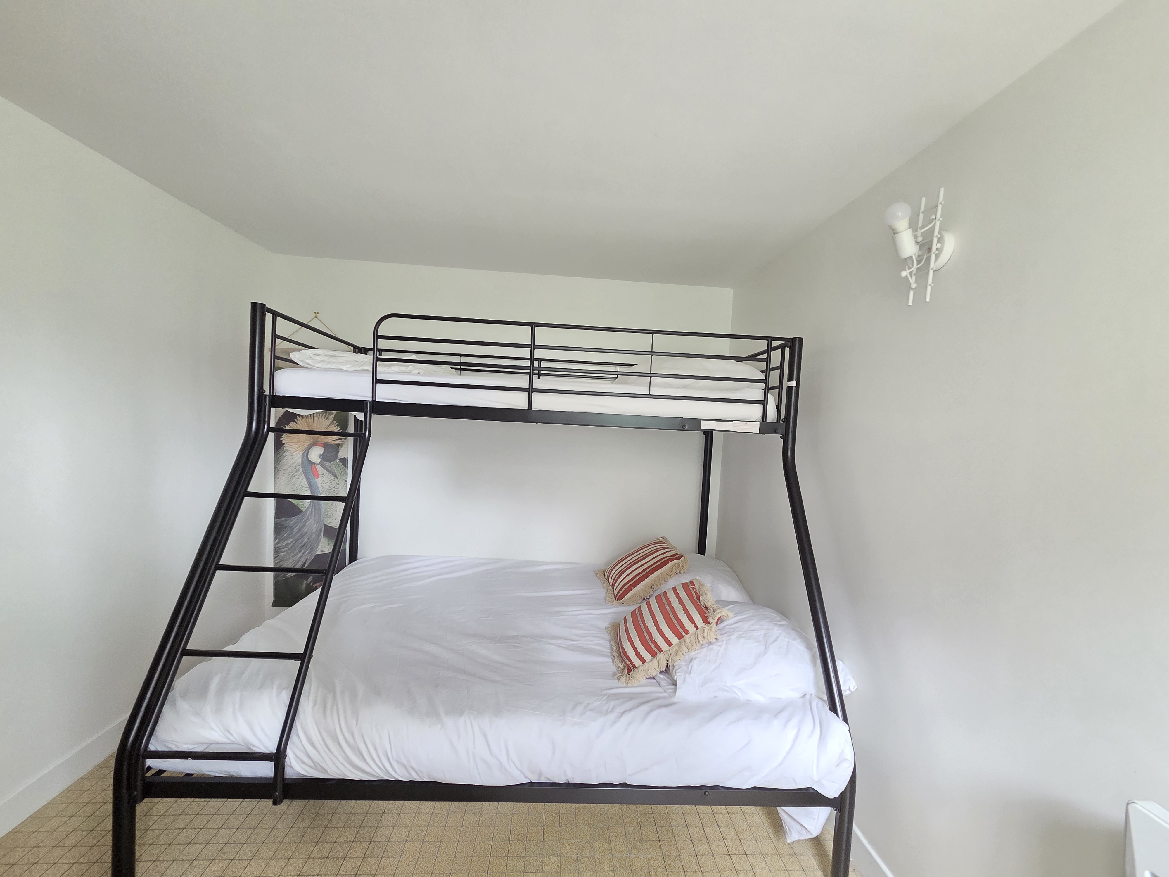 -Deux chambres : 1 chambre avec lit double (160 cm) . 1 chambre avec lits superposés (1x140 cm en bas et 1x90 cm en haut), idéale pour enfants ou amis.