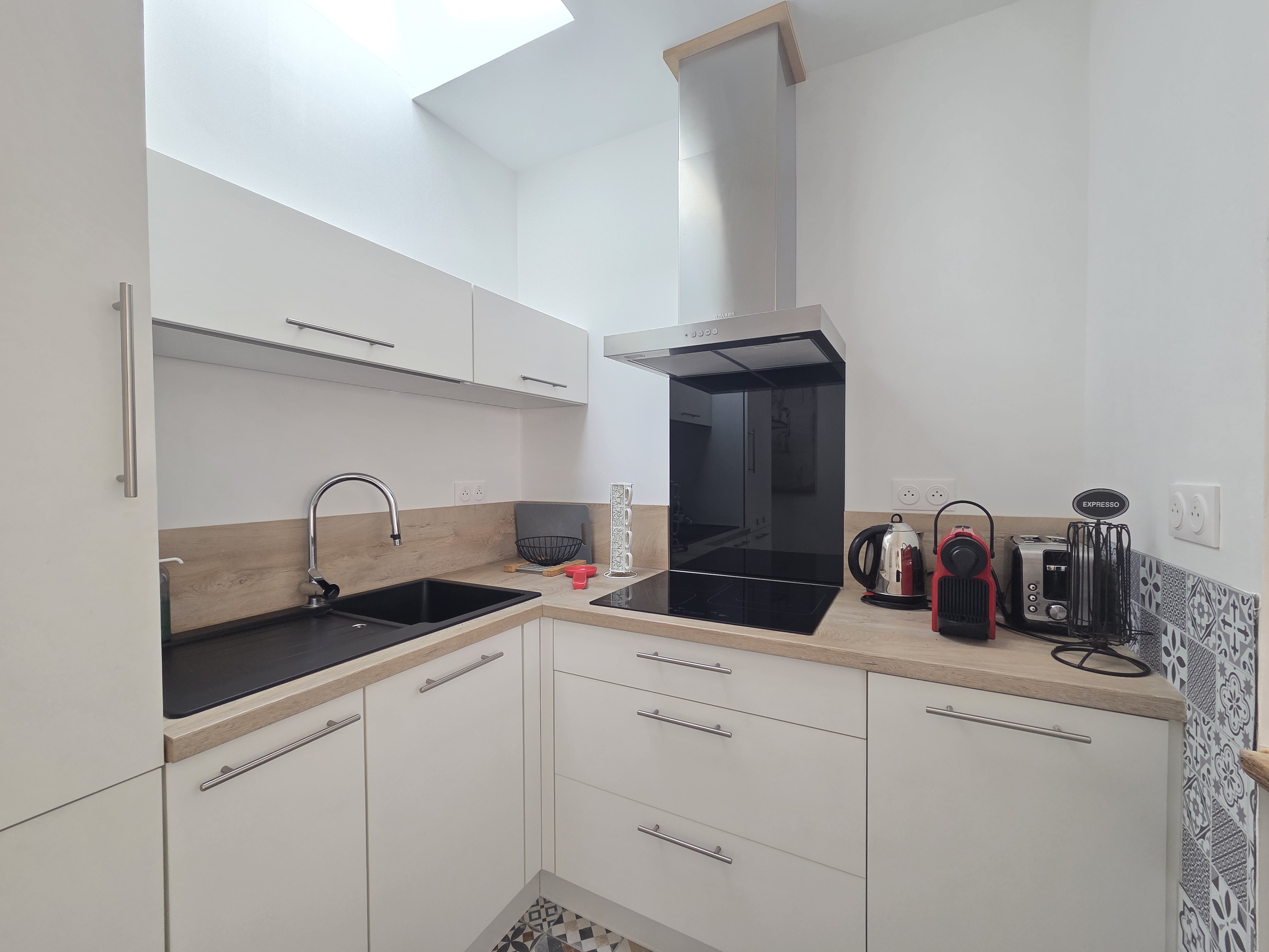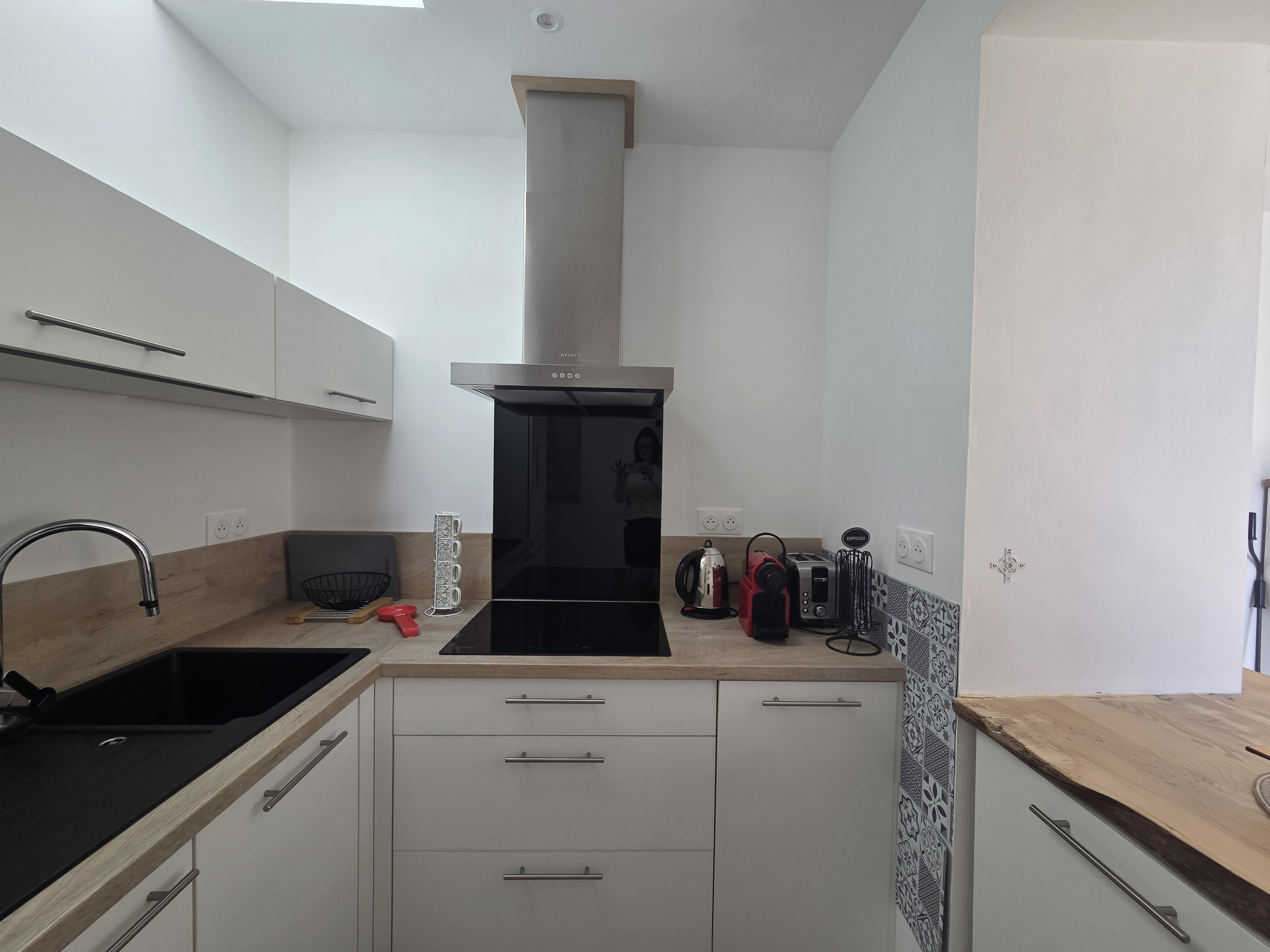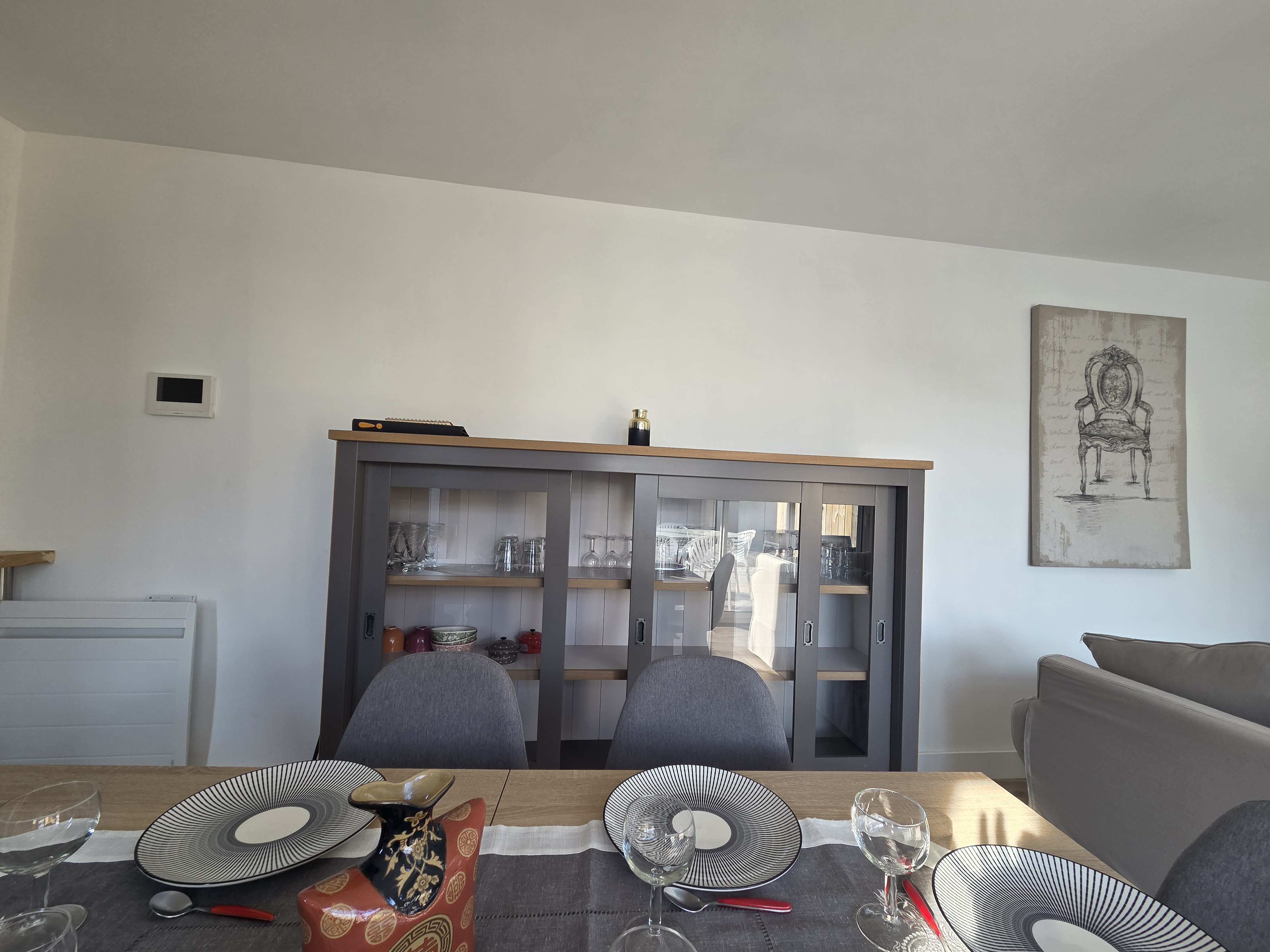 La cuisine aménagée et équipée comprend un réfrigérateur-congélateur, un lave-vaisselle, un four et une plaque de cuisson, offrant tout le nécessaire pour préparer vos repas. La maison dispose de trois chambres : une chambre avec un lit 160 cm et deux autres avec des lits de 140 cm. Vous trouverez également une salle de bains avec baignoire et un WC indépendant. Un cellier avec lave-linge complète l'équipement de cette maison.