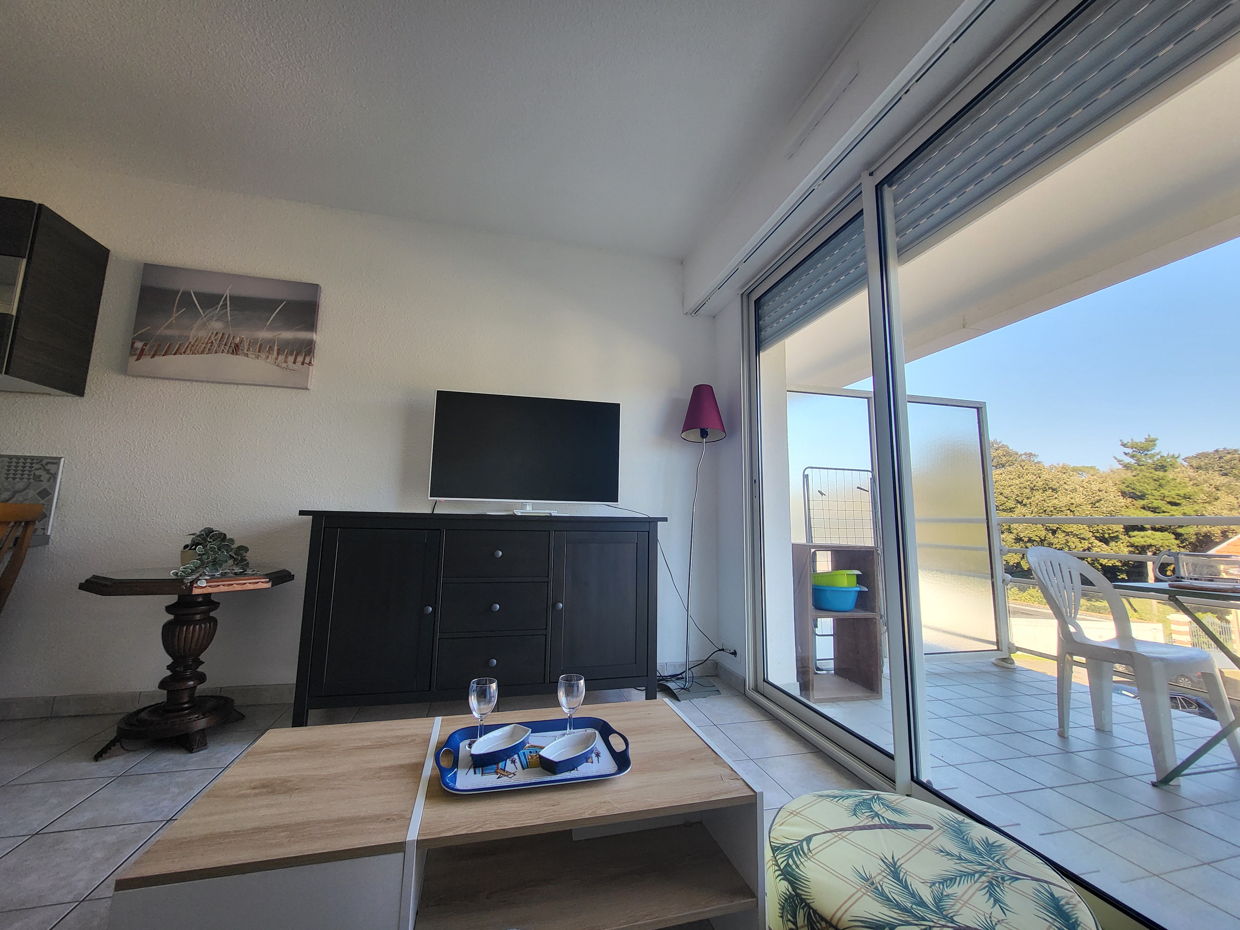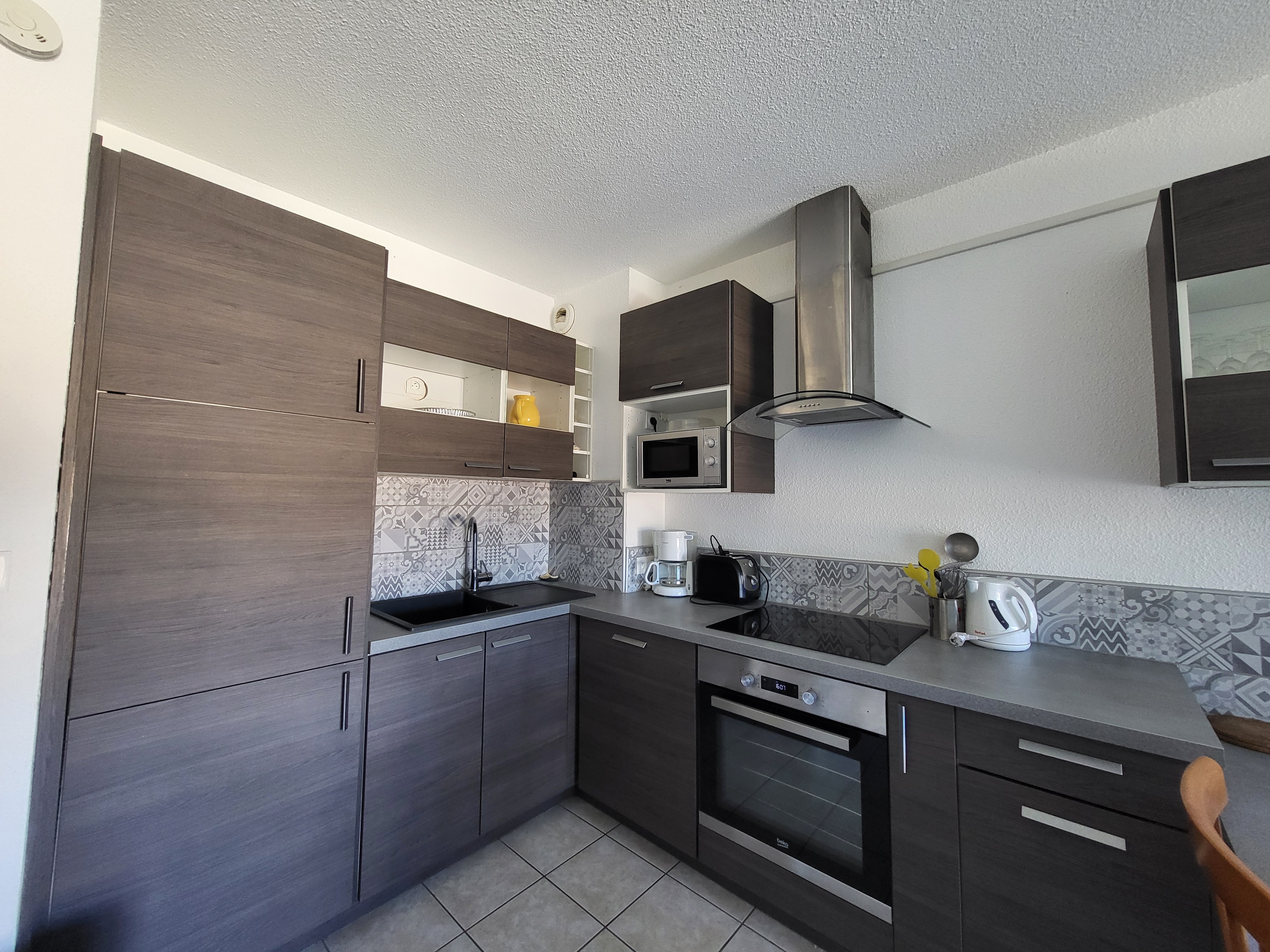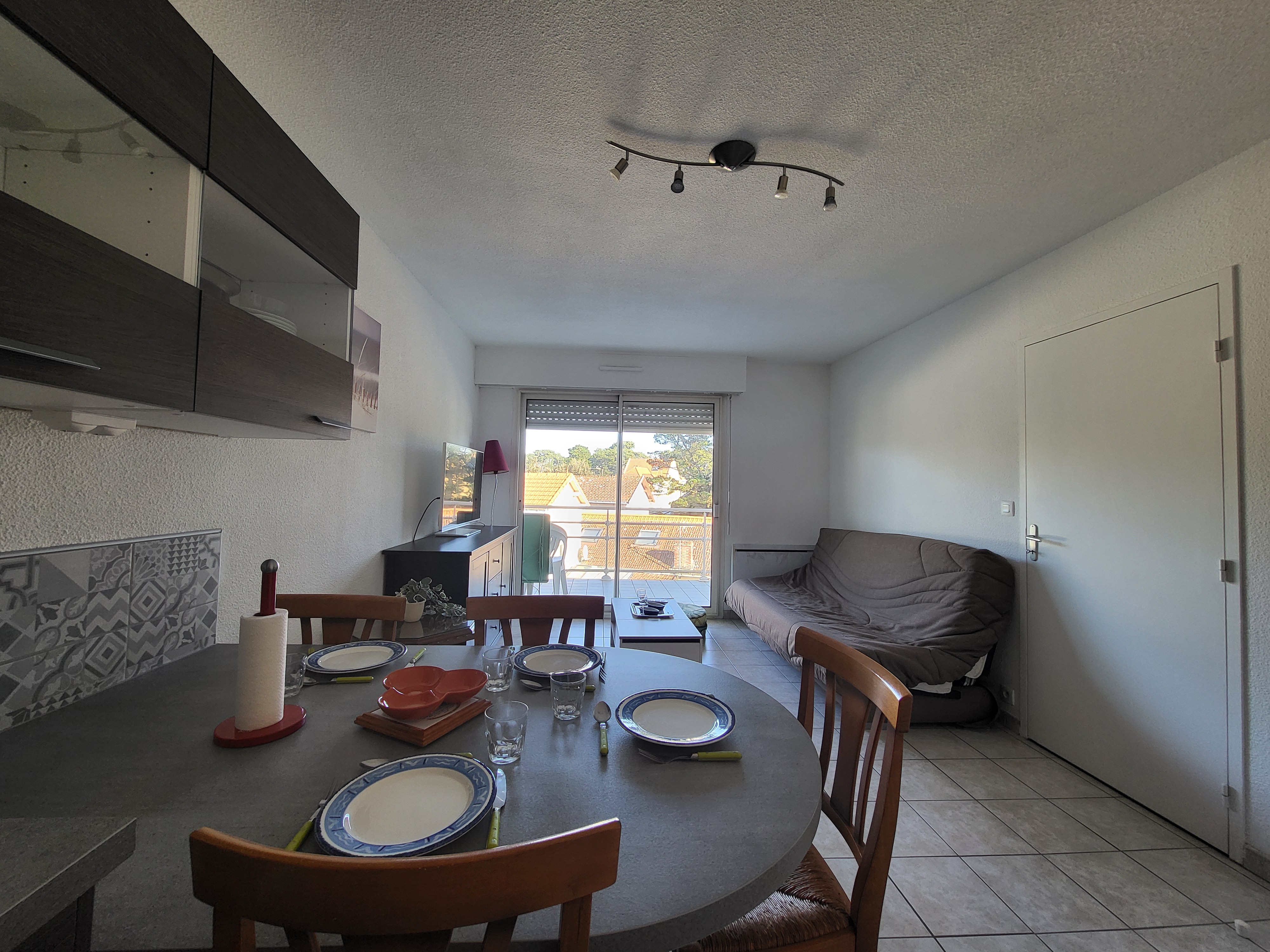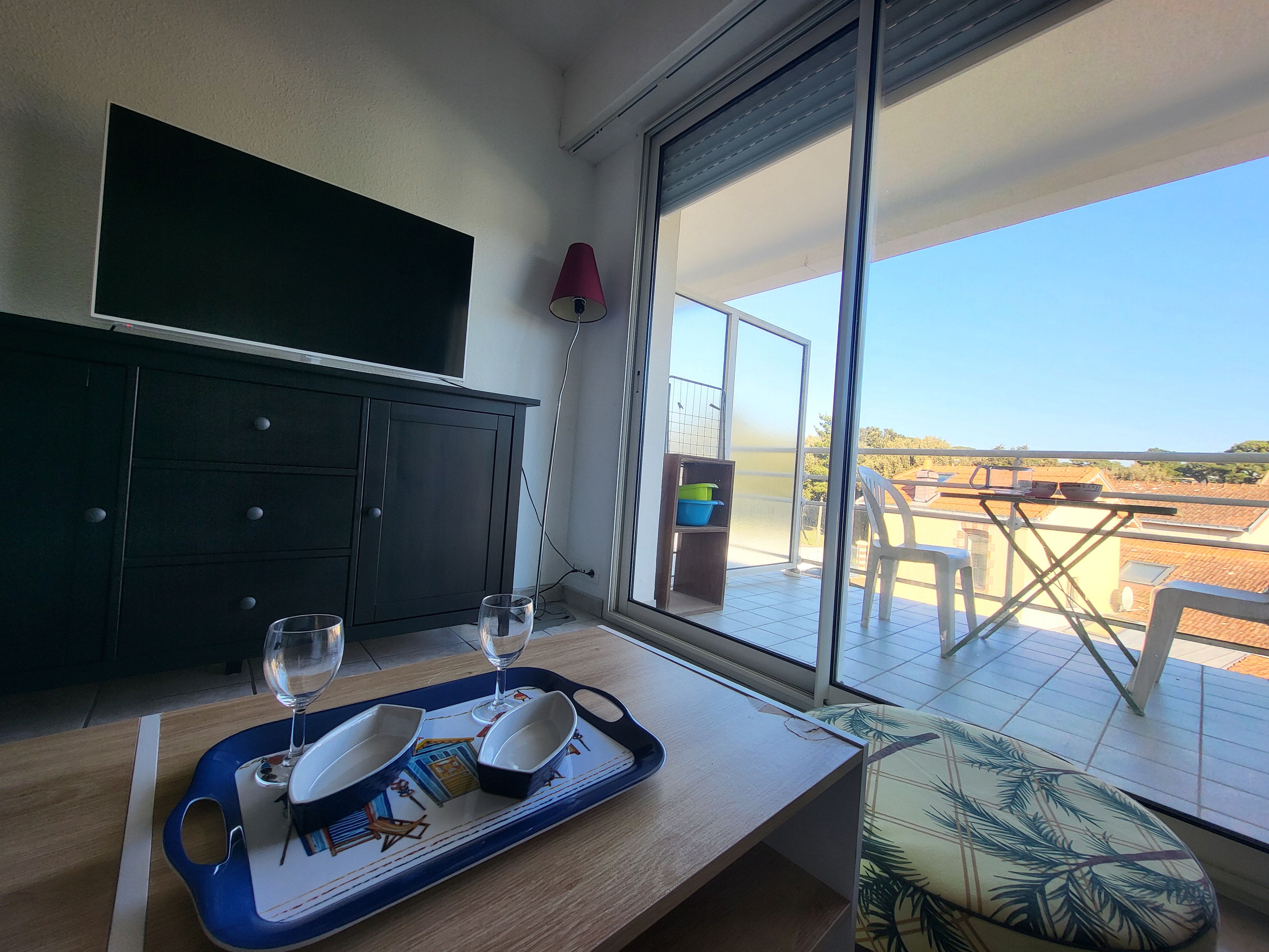 Cette location de vacances offre un espace de vie fonctionnel et bien équipé : un séjour lumineux avec coin-cuisine comprenant une plaque à induction, une hotte, un réfrigérateur-congélateur, un micro-ondes, un lave-vaisselle, une télévision et un canapé convertible. La chambre dispose d’un lit double (140 cm). La salle d’eau est équipée d’une douche cabine, d’un meuble vasque et d’un lave-linge. Les WC sont séparés. L’entrée comprend un placard-penderie pour faciliter le rangement, et un balcon est également à votre disposition pour profiter de l’extérieur.