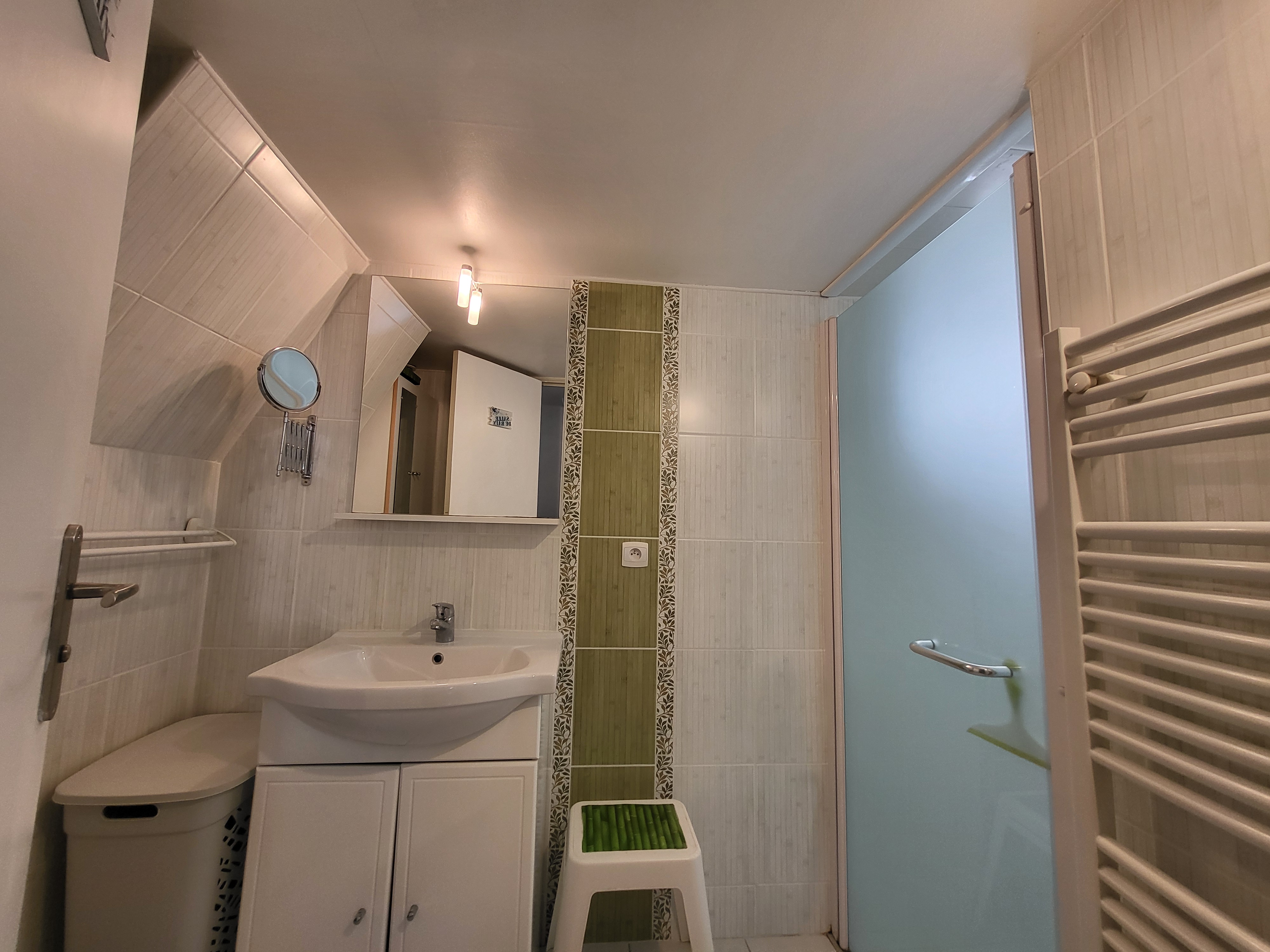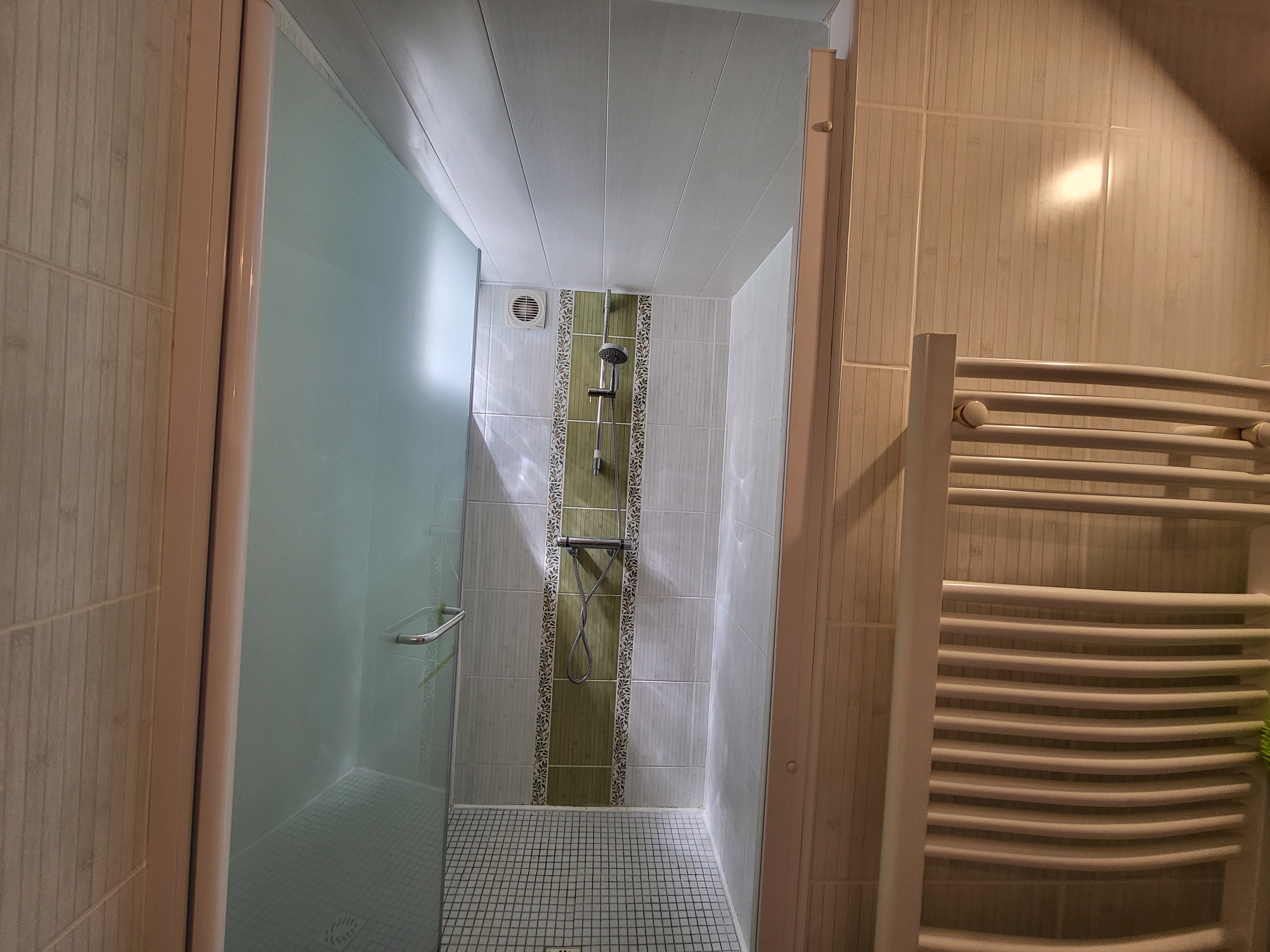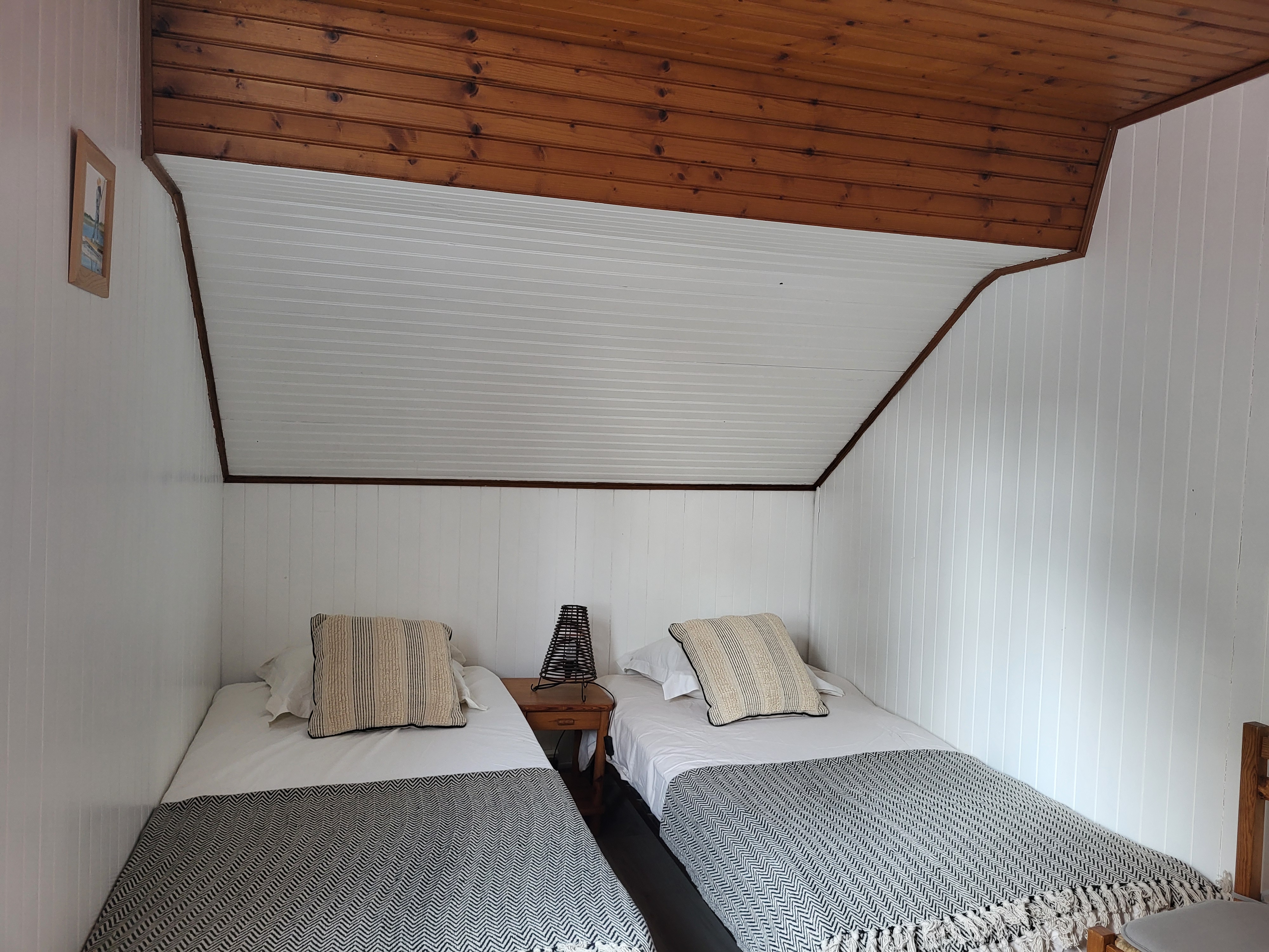 Très bien équipée et aménagée, elle dispose de tout le confort nécessaire à d'agréables vacances (lave-linge et sèche-linge dans cellier, lave-vaisselle, table cuisson 2 feux / 2 vitrocéramiques, rangements). Elle dispose au rez-de-chaussée (surélevé de 2 marches) d'une cuisine ouverte sur séjour avec accès sur une petite terrasse équipée de mobilier de jardin et d'un barbecue, d'une chambre avec lit 140 cm, d'une seconde chambre avec lit 90 cm, une salle d'eau. Elle comprend également une chambre mansardée à l'étage avec 2 lits de 90 cm.