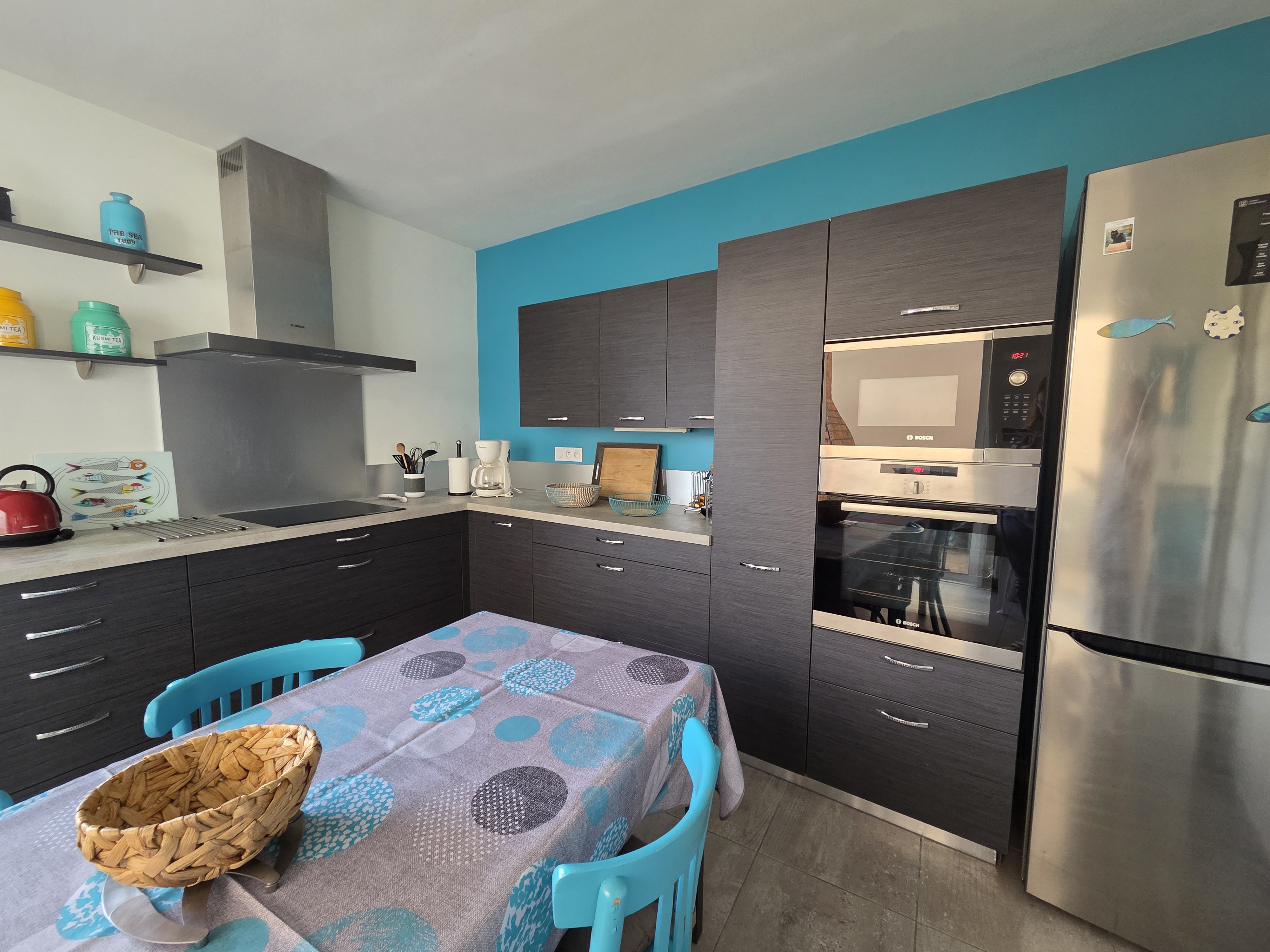 Rez-de-chaussée : Entrée, salon-séjour lumineux, cuisine aménagée et équipée (four, lave-vaisselle…), buanderie/garage (machine à laver), WC séparé.