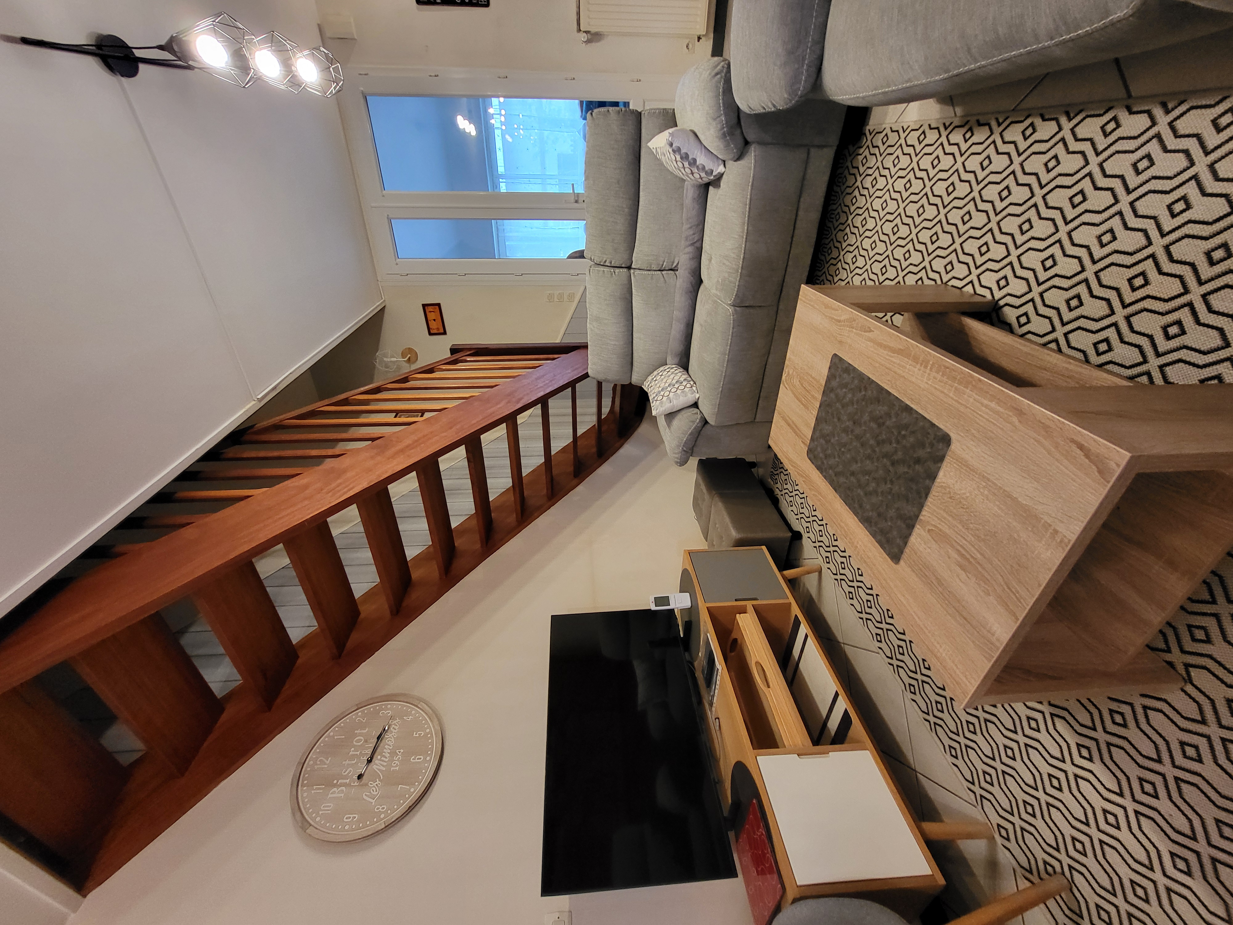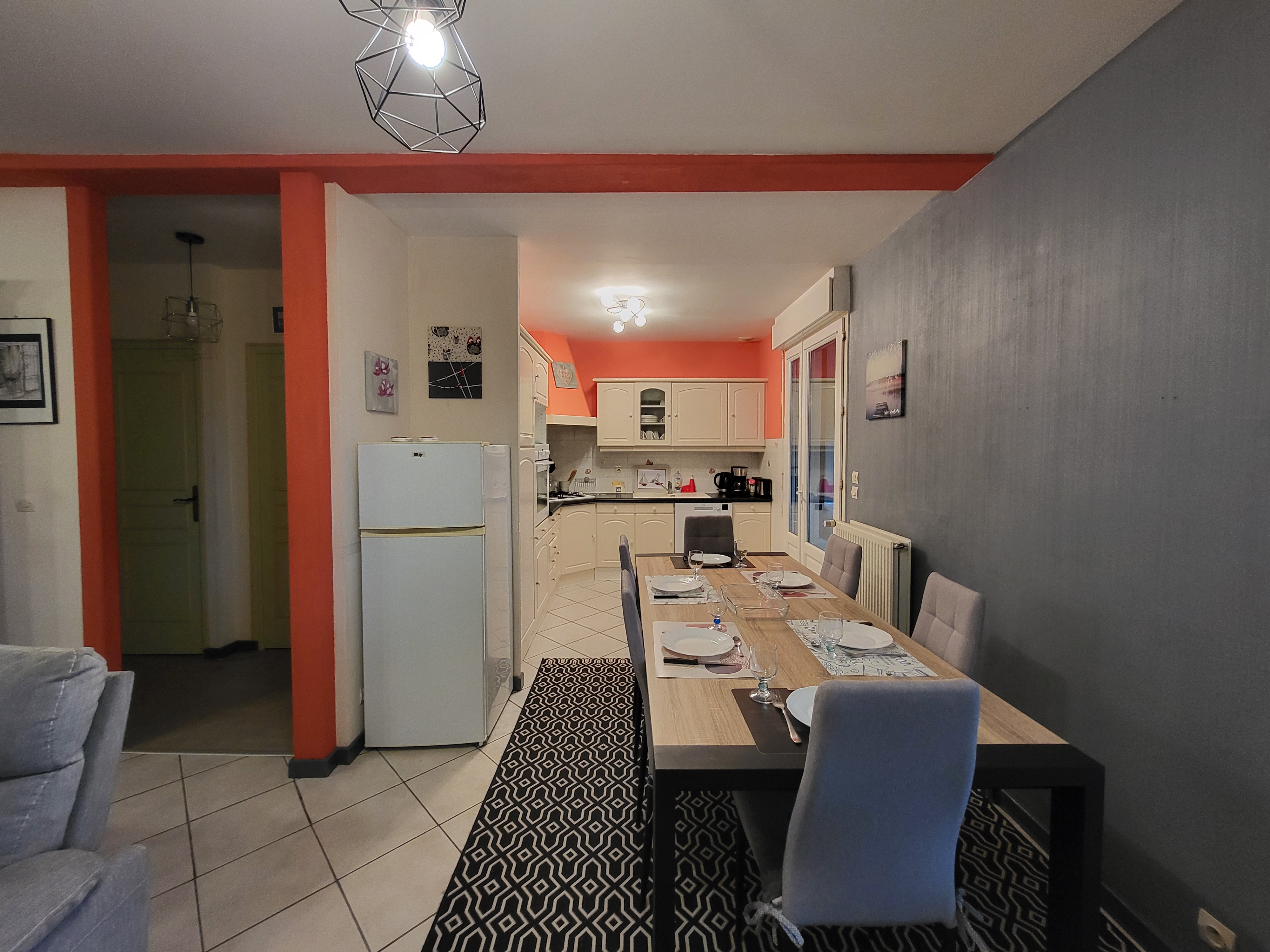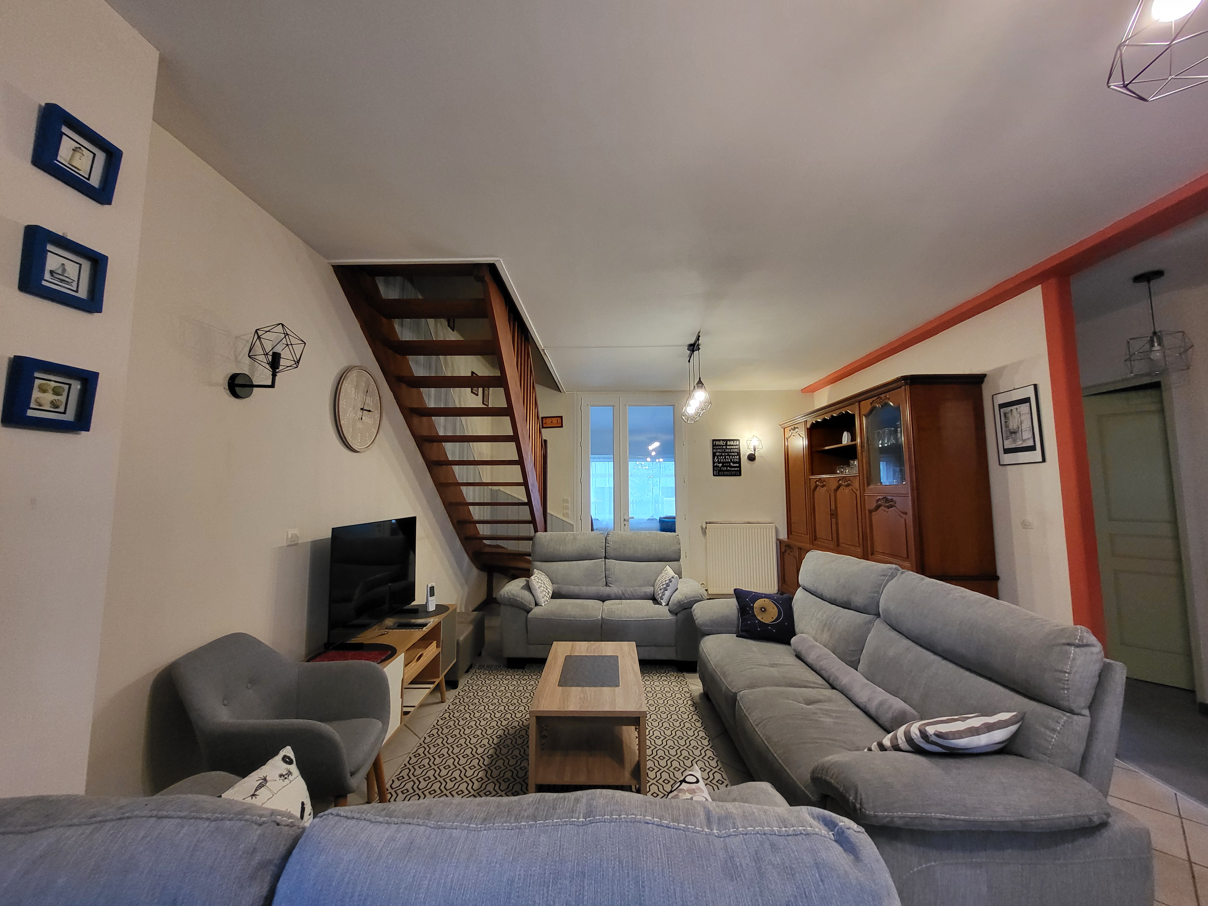 Au rez-de-chaussée, vous profiterez d’un salon rénové ouvert sur une cuisine aménagée et équipée, d’une salle d’eau moderne et fonctionnelle, d’un WC indépendant, d’une chambre confortable (lit 140x190 cm), ainsi que d’une véranda lumineuse avec un coin buanderie et un mini salon.