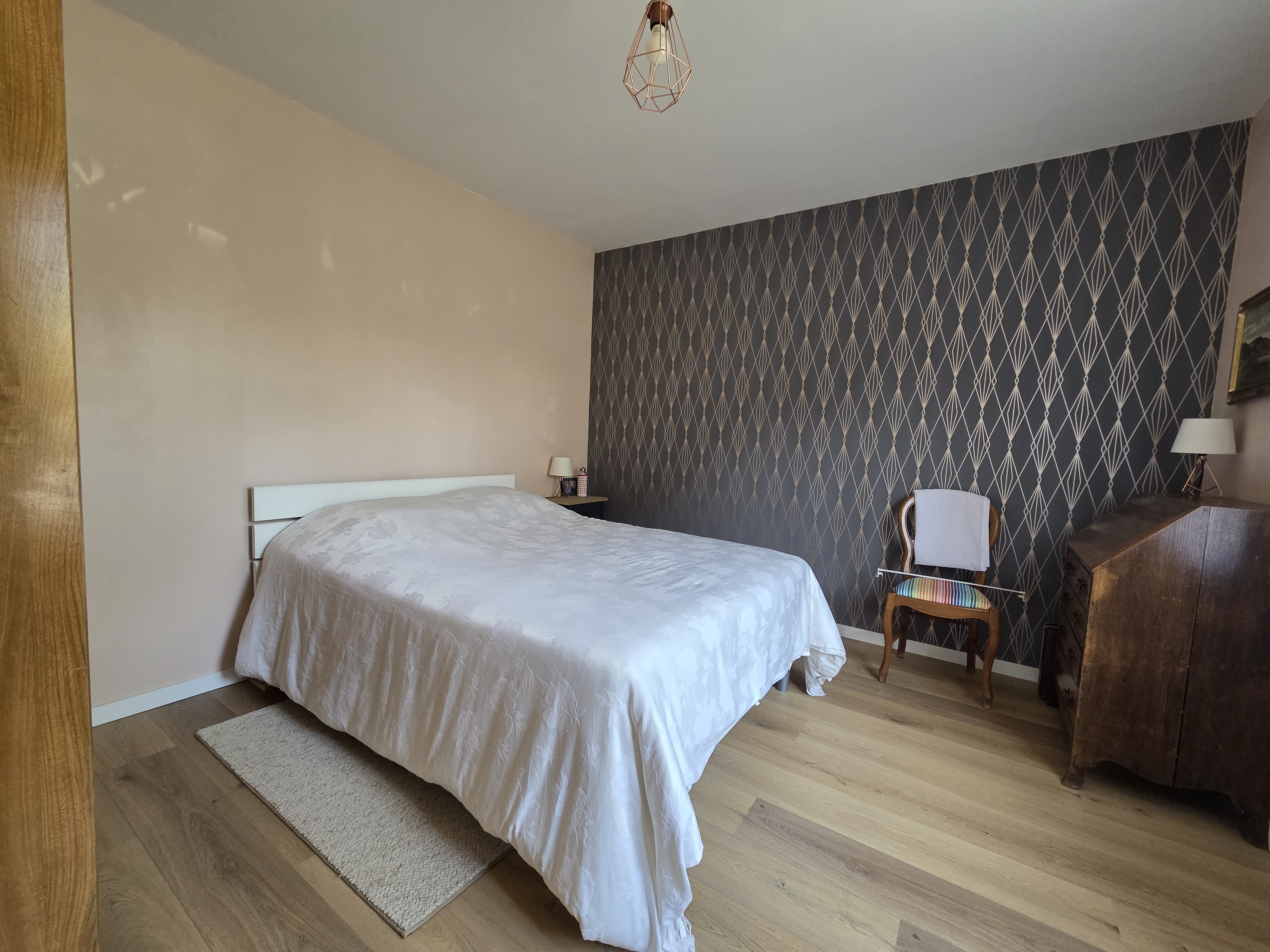 Une chambre cocooning avec lit double (140x190), idéale pour des nuits paisibles.