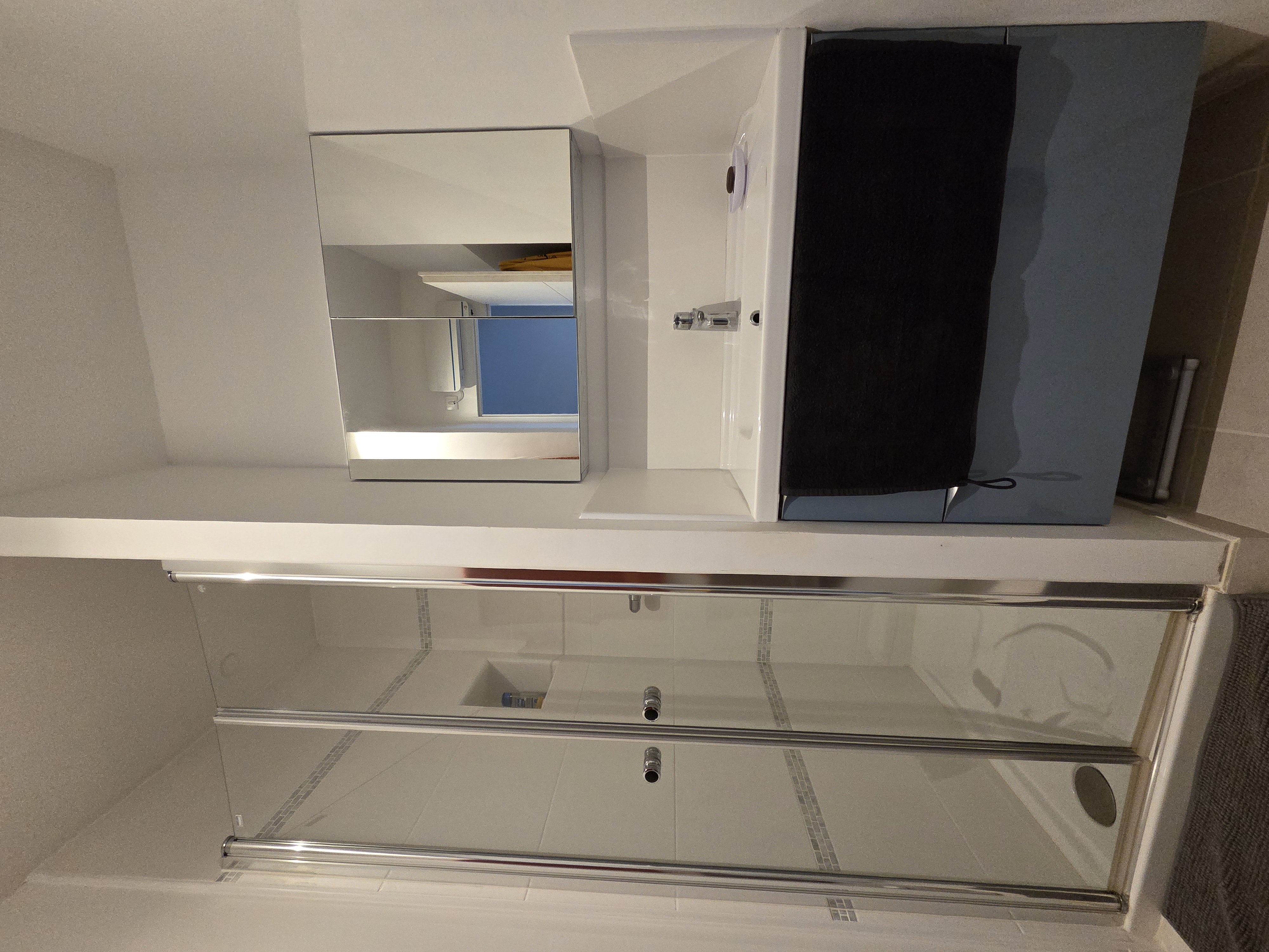 Une salle d’eau moderne et fonctionnelle.