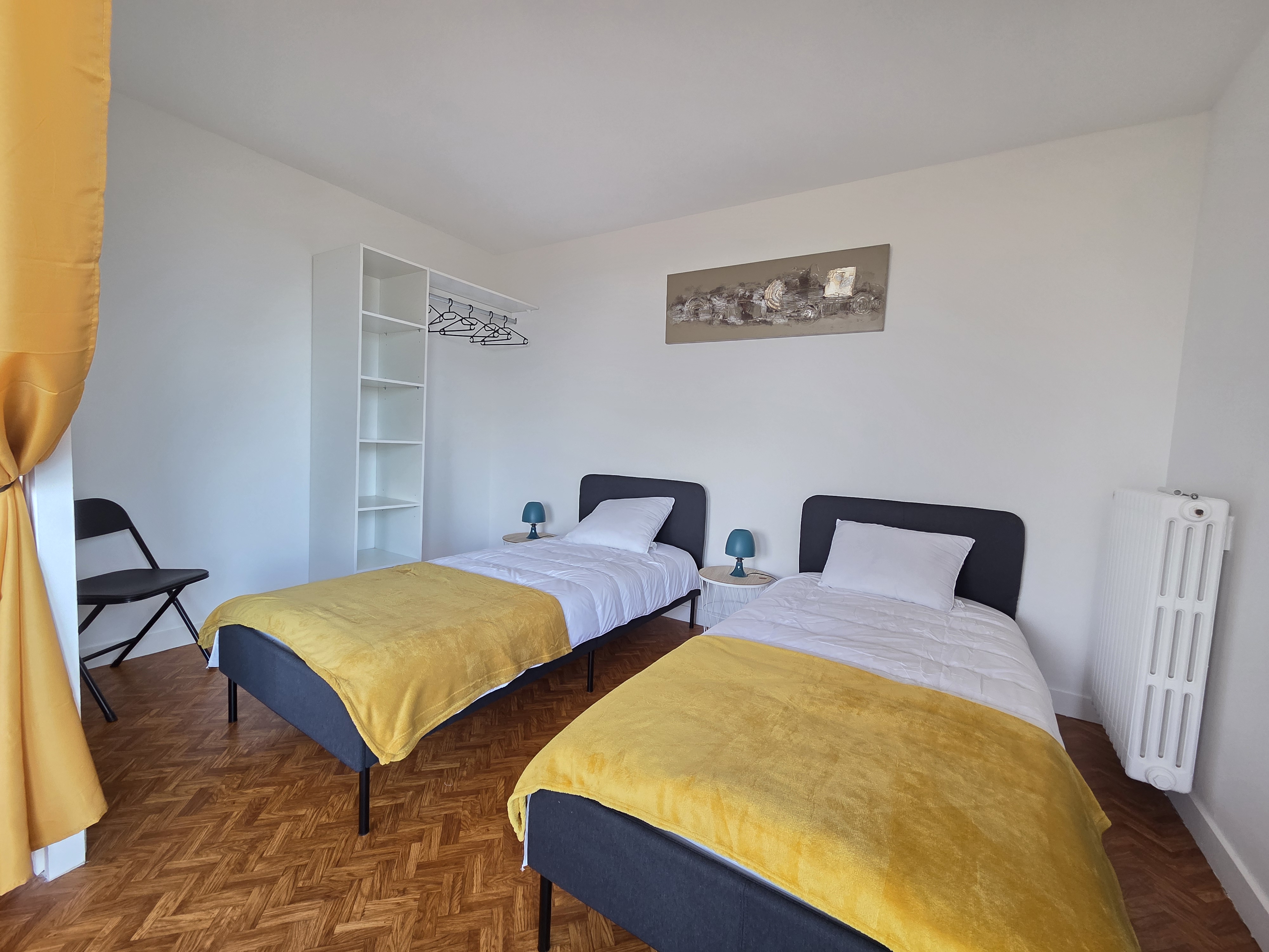 -Petit coin nuit séparé avec deux lits simples (90 cm), idéal pour les enfants ou invités, un rideau sépare le coin nuit et le salon-séjour.