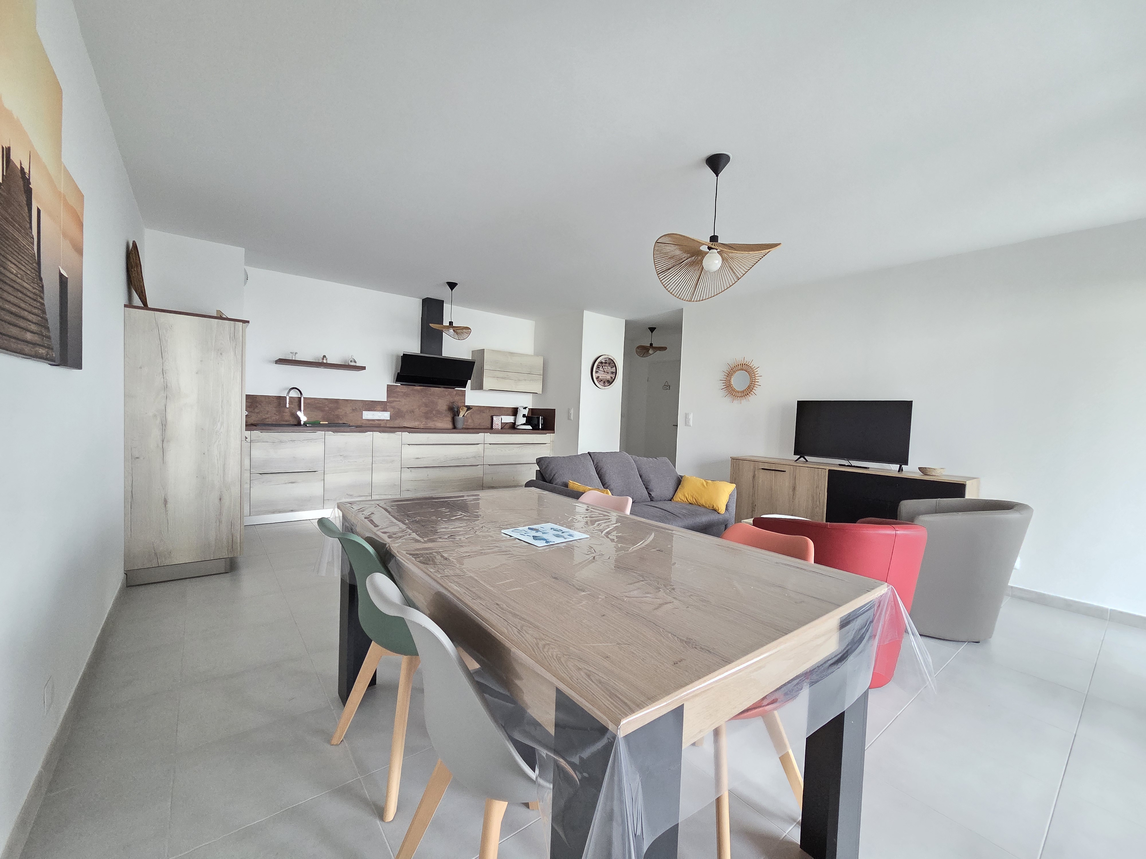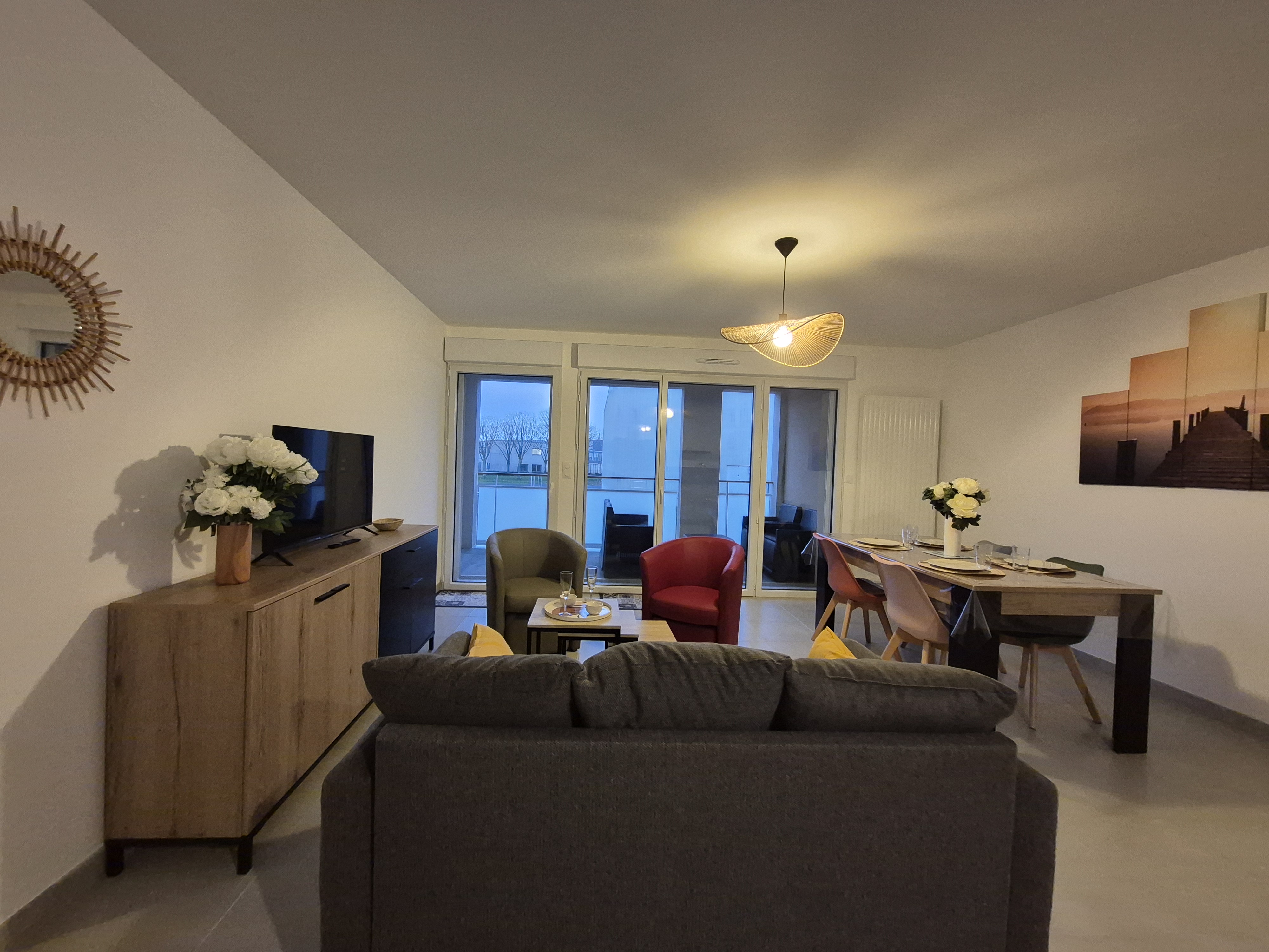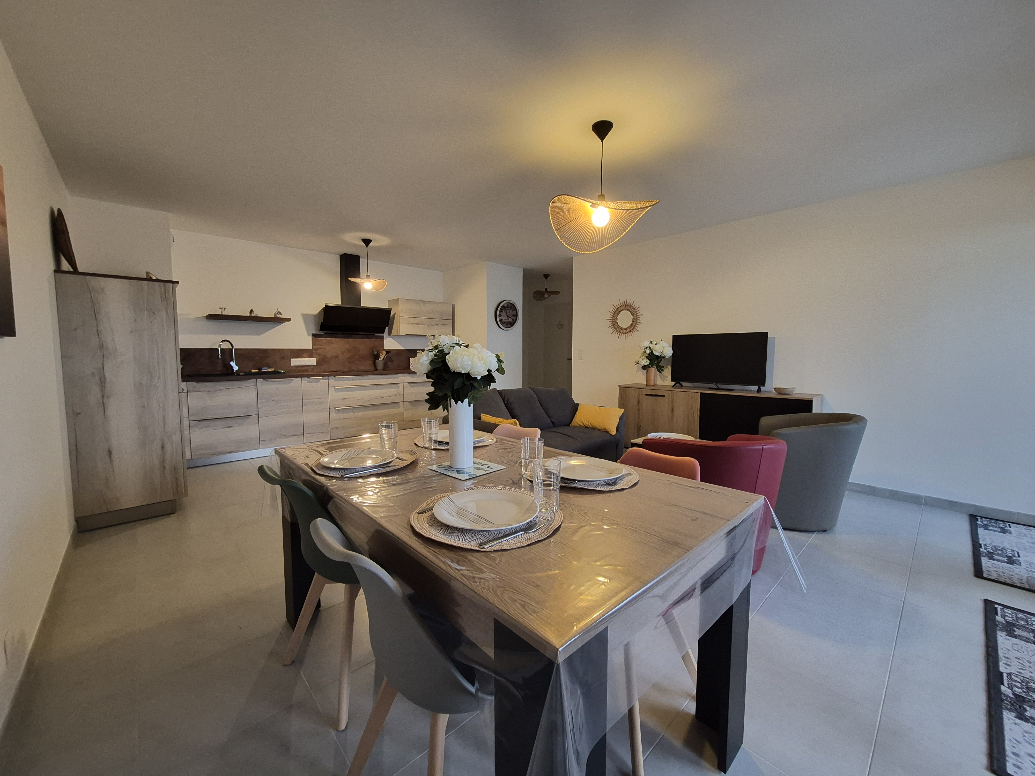 -Séjour lumineux équipé d’une télévision, ouvert sur la terrasse, idéale pour vos moments de détente.
