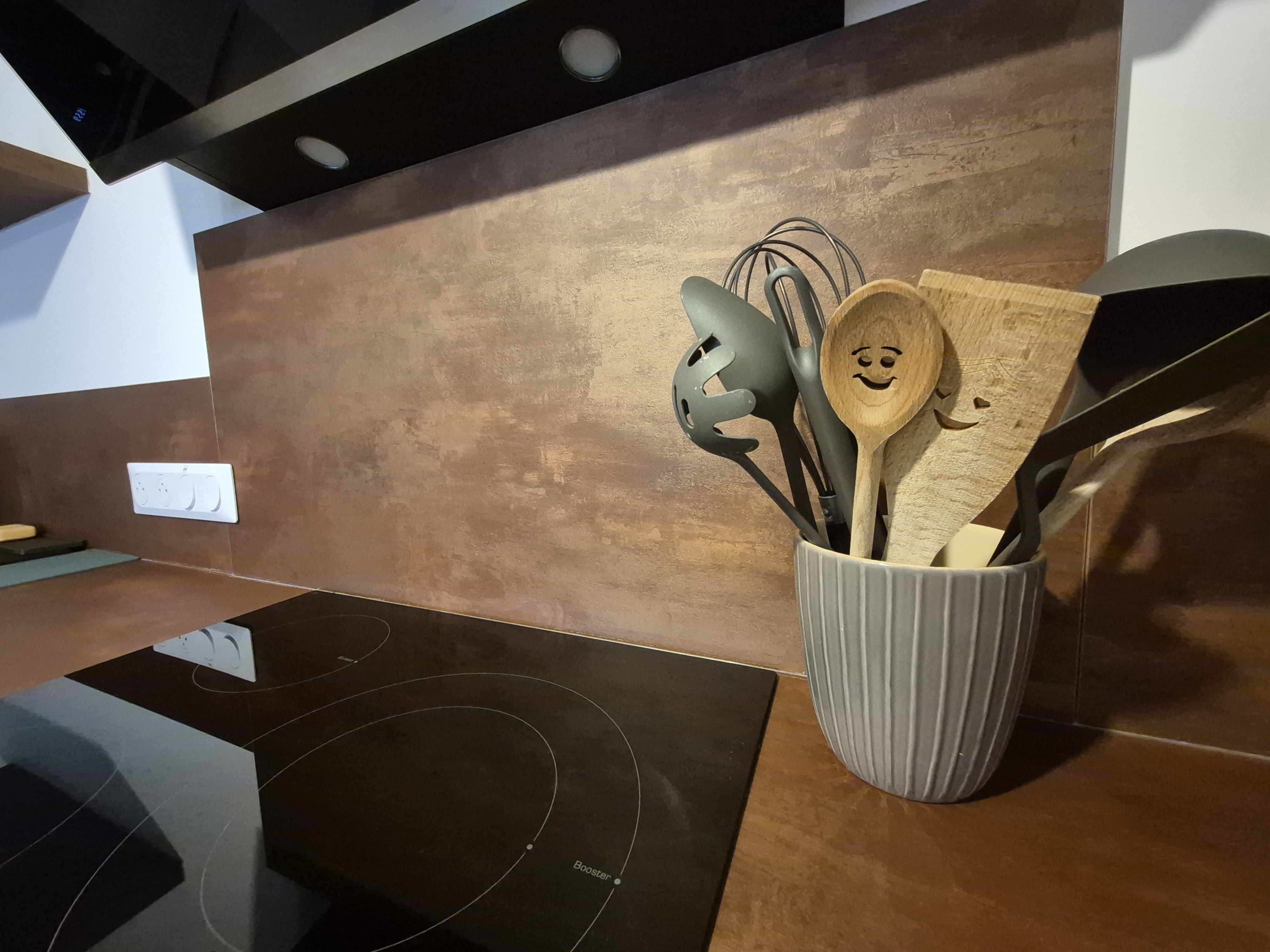 -Cuisine équipée avec réfrigérateur, lave-vaisselle, plaques, micro-ondes, cafetière, bouilloire, grille pain, et ustensiles essentiels pour préparer vos repas.