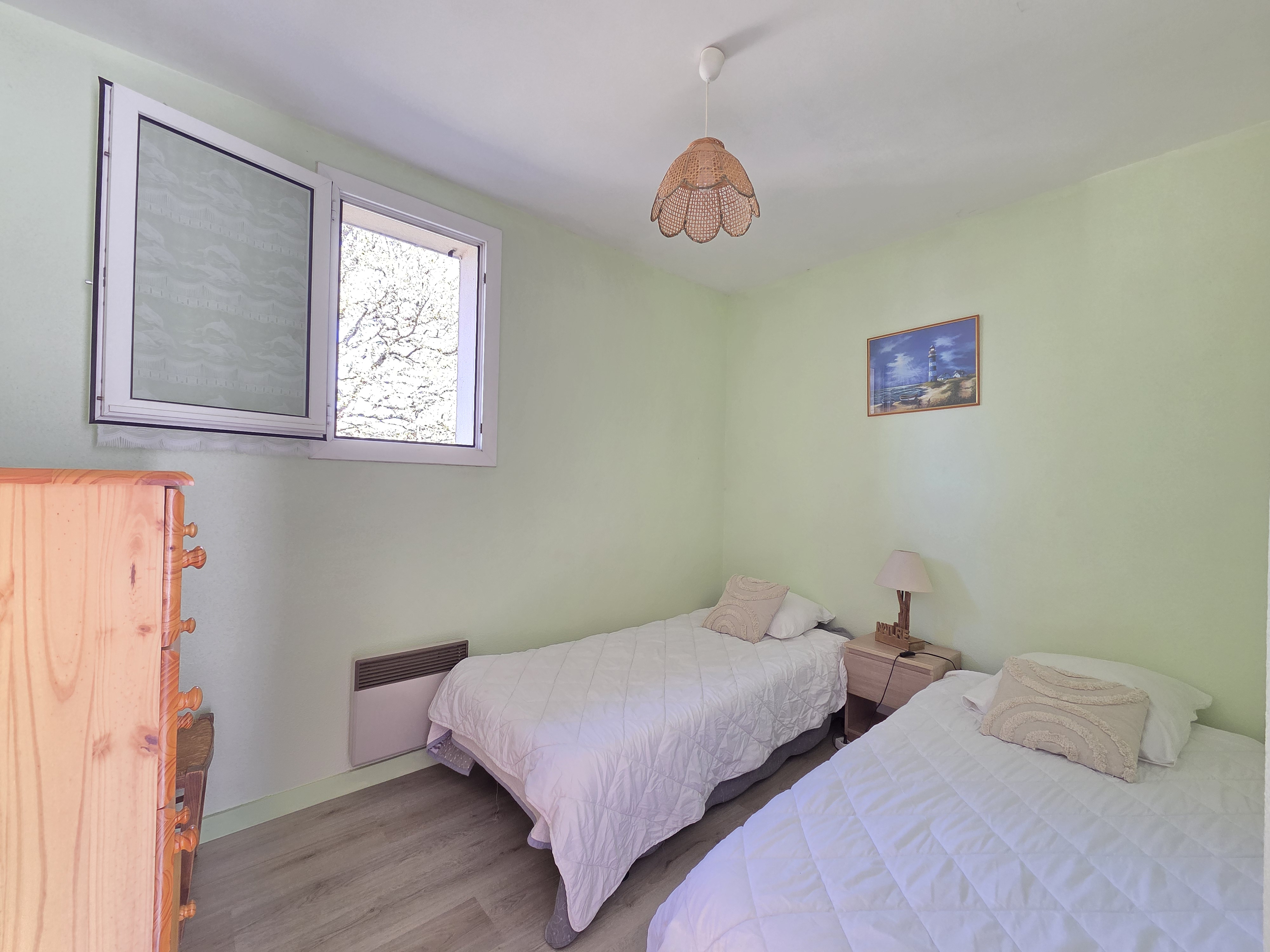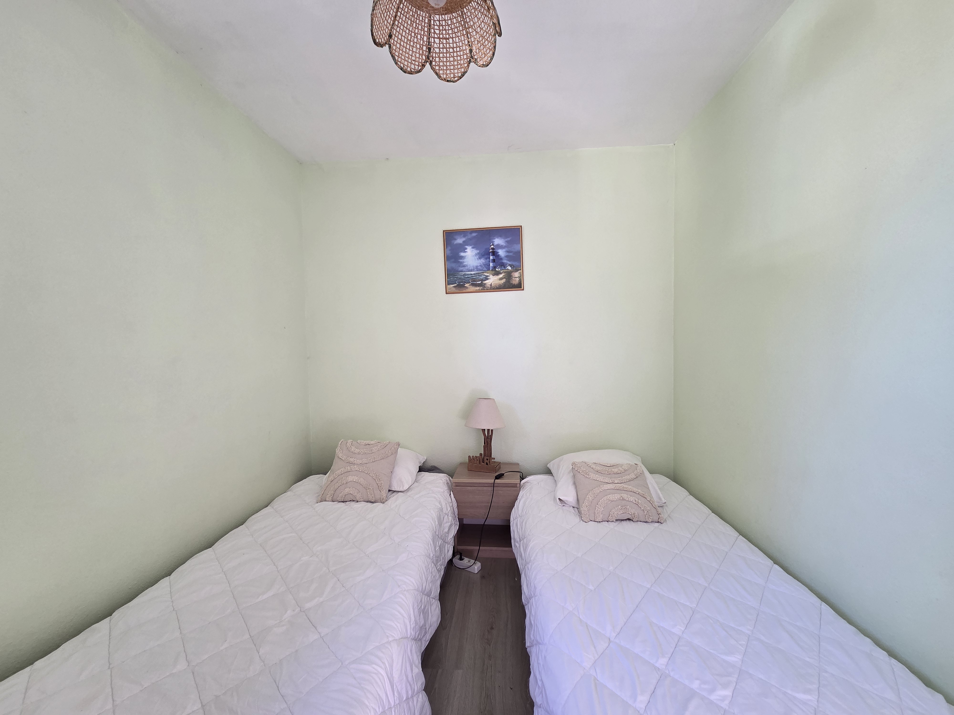 Proche de la plage et des commerces , cet agréable appartement en duplex est équipé et aménagé pour vous offrir tout le confort nécessaire pour de belles vacances. Il dispose au rez-de-chaussée d’un coin cuisine donnant sur une salle à manger/séjour et d’une salle d'eau. Le coin nuit se situe à l'étage avec une chambre (lit 140 cm) donnant sur un balcon et une deuxième chambre en enfilade, équipée de 2 lits de 90 cm.