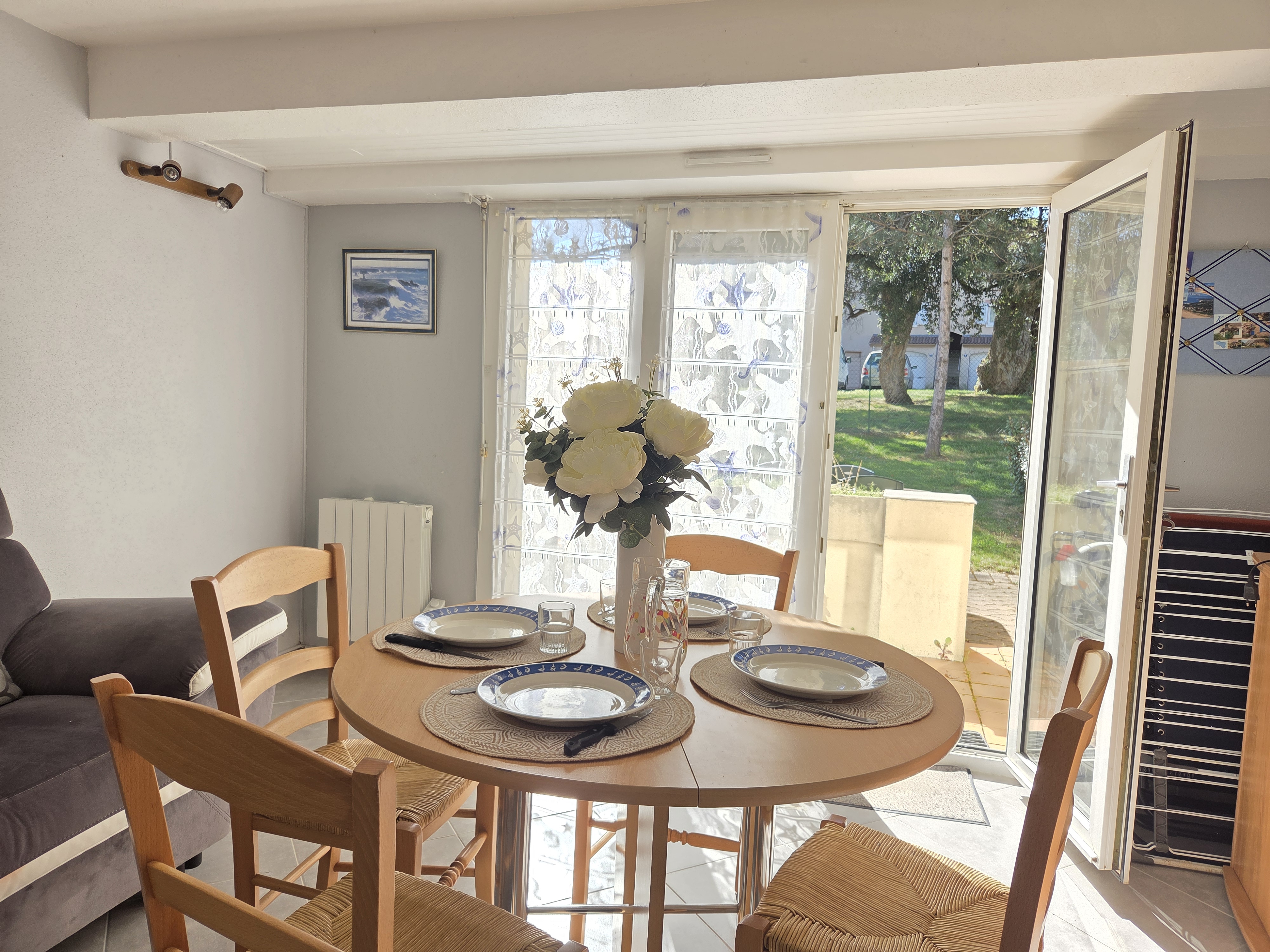 Lors des journées ensoleillées, vous pourrez profiter de moments en famille ou entre amis sur la terrasse aménagée, avec salon de jardin et barbecue.